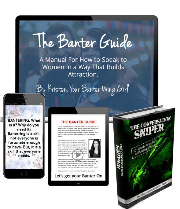 A: The Banter Guide will work for you if you’re a beginner or pro. Even expert pick-up artists tell us this program is choke full of content that dramatically improved their bantering skills with women.